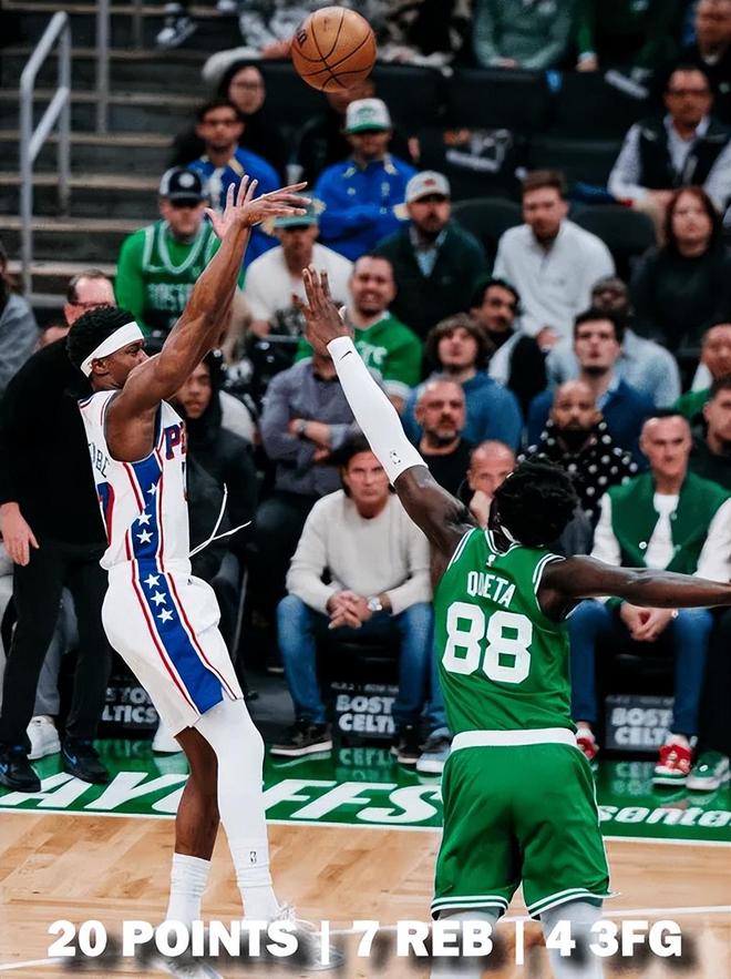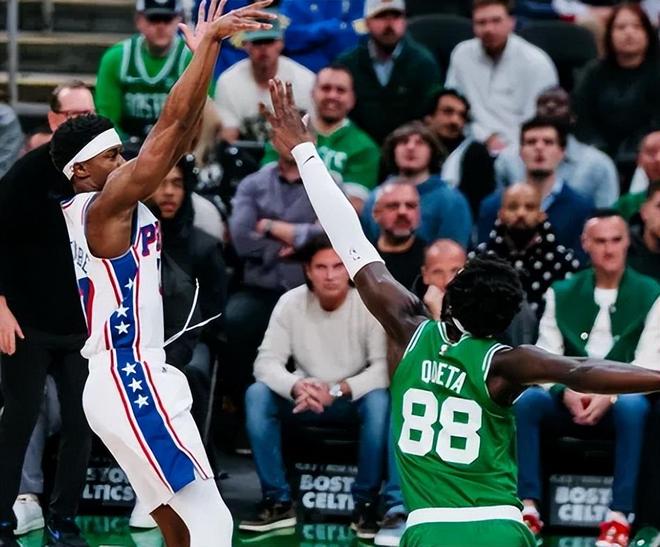 第四节决战,塔图姆和布朗分别三分和中投命中,帮助球队止血。马克西利用德拉蒙德掩护,连中两记三分,将分差拉开至15分。比赛失去悬念,最终,76人111-97爆冷逆转复仇凯尔特人,大比分1-1扳平。
