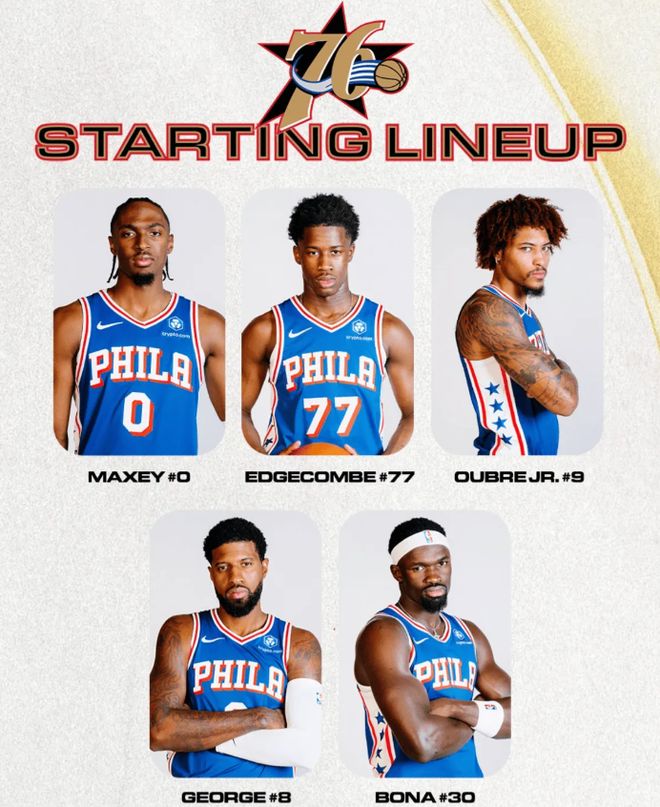 首发阵容方面,凯尔特人队这边,全员健康,主帅排出的首发五人组为:德里克-怀特、杰伦-布朗、杰森-塔图姆、萨姆-豪瑟和内米亚斯-克塔;76人队这边,恩比德因阑尾炎术后恢复继续缺席,这已经是他连续缺席的第5场比赛,首发阵容则为:泰雷斯-马克西、VJ-埃奇库姆、凯利-乌布雷、保罗-乔治和阿德姆-博纳。