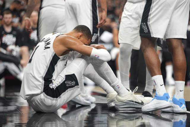 第二节8分57秒,维克托·文班亚马在一次篮下强攻中失去平衡,面部与硬木地板猛烈撞击。慢镜头显示,他的下巴与侧脸重重砸地,瞬间失去意识,瘫坐于地,表情痛苦,数分钟内无法起身。队医紧急进场,经过初步评估,文班亚马被搀扶离场,直接返回更衣室。
