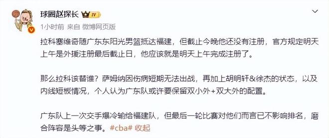 本赛季的CBA常规赛即将结束,几支球队都面临外援的调整,比如广东男篮和广厦男篮,目前这两支球队都拥有五名外援。按照CBA联赛的规定,本赛季的外援注册期是截止到24日早上的10点,此后各队将不能再更换外援。广东男篮方面,萨姆纳和麦考尔都没有随队出征前往福建,这也让很多球迷认为球队已经在外援上做出选择,麦考尔已经确定被放弃。不过据“球圈赵探长”透露,这件事可能还会有些变化,萨姆纳短期内是无法出战的。麦考尔也并非是因为要被裁而没有去福建,而是因为他的孩子要在广东出生了,麦考尔是留在妻子身边陪伴。