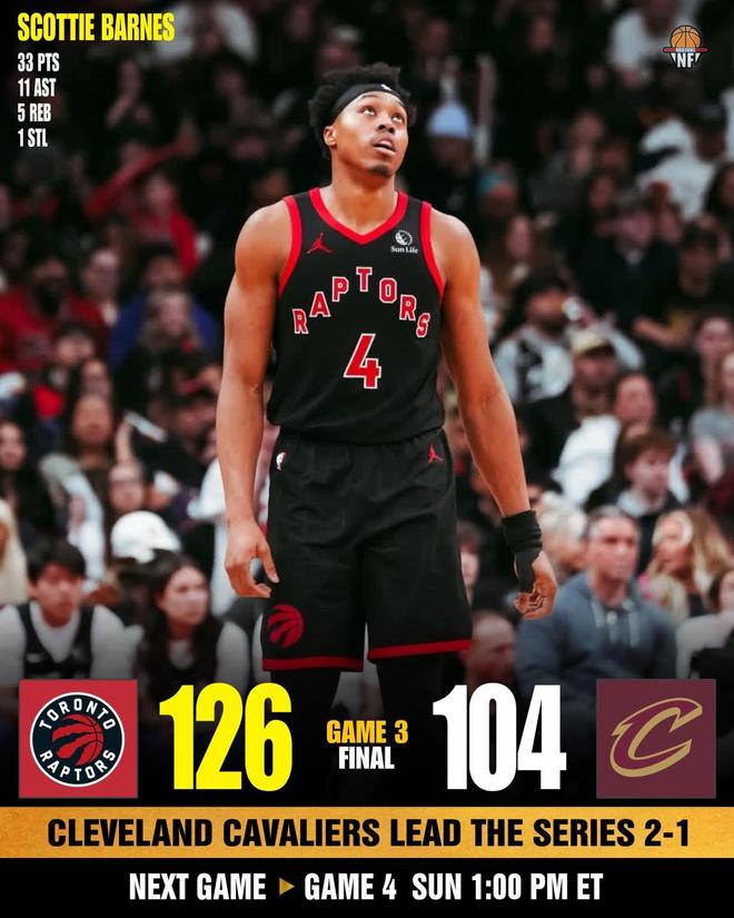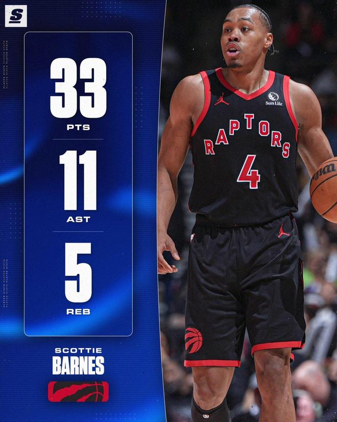 数据统计显示,巴恩斯成为了猛龙队史上第二个在季后赛中砍下至少30分10助的球员。第一个是范弗里特。