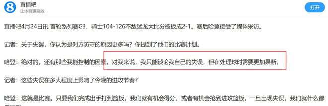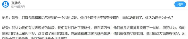 直播吧:《【完整版】阿特金森:猛龙对核心球员的限制非常好 继续相信传球》2026年4月24日直播吧:《哈登:进攻空间不好导致了犹豫 第四战我会变得更好》2026年4月24日央视网:《巴恩斯33+11 猛龙末节爆发力克骑士总分扳成1-2》2026年4月24日