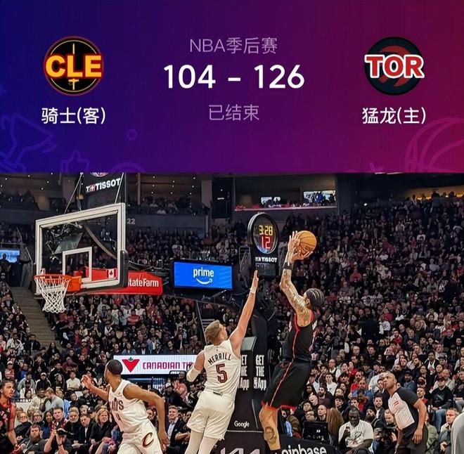 4月24日NBA季后赛东部首轮第三战,手握2-0绝对主动权的克利夫兰骑士远征多伦多,却遭遇当头一棒——以104比126吞下22分惨败,系列赛大比分被追至2-1!