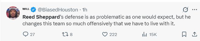 美媒NBA:谢泼德打得太愚蠢了,明明该把更多球给申京来运作。