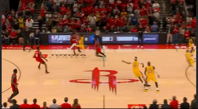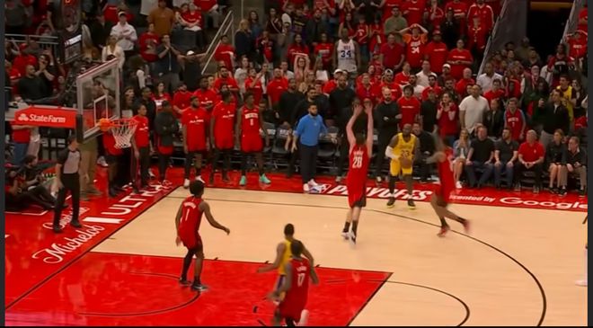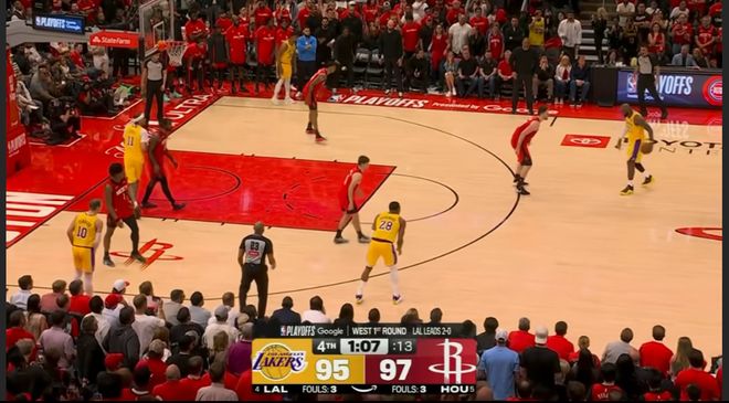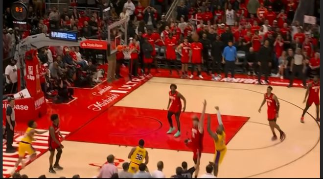 在今天火箭与湖人的系列赛第三场。