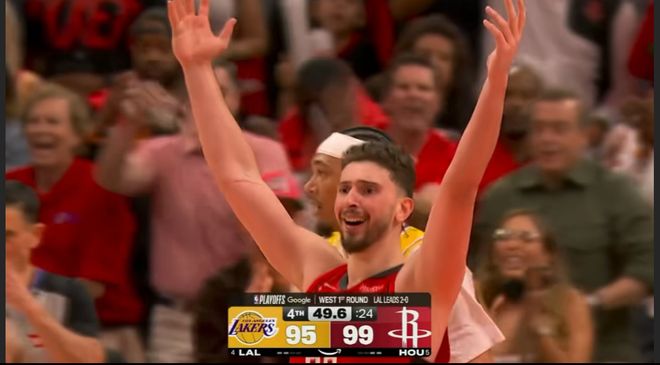 时间回到比赛第四节最后两分钟,当看到火箭反超湖人的那一刻,