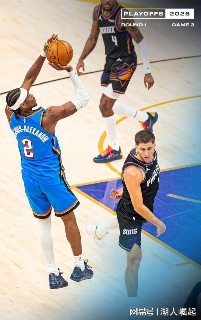 北京时间4月26日,NBA季后赛继续进行,俄克拉荷马城雷霆队再胜一场扩大优势。亚历山大得到42分和8次助攻,他引领球队逐渐确立优势,雷霆队在西部首轮第三场做客以121-109大胜菲尼克斯太阳队。雷霆队将总比分扩大为3-0,双方系列赛的第4场将继续留在菲尼克斯进行。