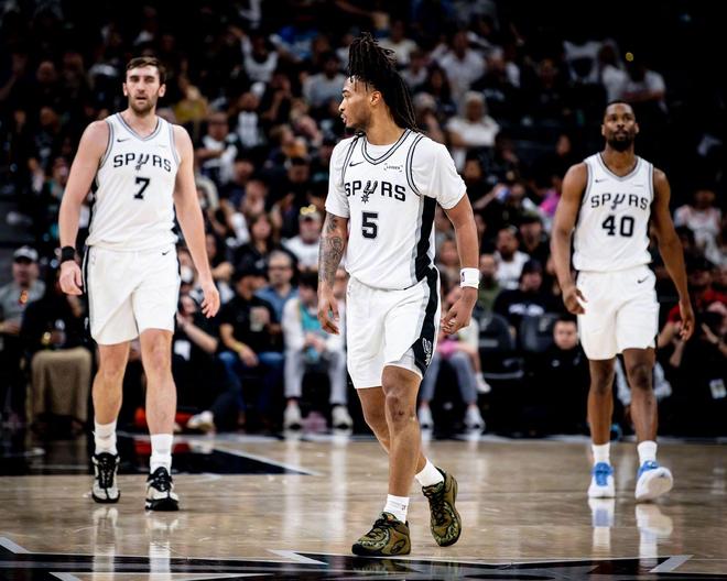 马刺方面,卡斯尔季后赛3场比赛场均可以贡献22.7分5.3个篮板5.7次助攻,G2之战文班亚马伤退缺席了G3,2场比赛场均20分4.5个篮板并不能直接体现他的价值。福克斯场均17.3分6次助攻,哈珀场均14.3分4.7个篮板,瓦塞尔场均14分7.3个篮板,科内特场均11.3分8.3个篮板。