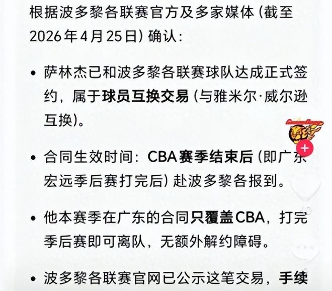 CBA常规赛刚落下帷幕,季后赛附加赛马上就要开打,广东宏远这边先捅出了大瓜。自家当家大外援萨林杰,居然提前悄悄和波多黎各联赛的球队签了约,就等打完广东的季后赛,立马拎包走人。这事儿放出来,广东球迷直接坐不住了,毕竟这赛季广东的处境有多难,大家都看在眼里。
