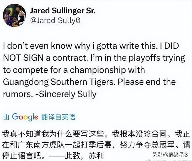 CBA季后赛开打前,突然网络上传出萨林杰已经找好下家的消息引发外界的持续热议,甚至一度上升到不少球迷在广东男篮官方社媒留言的地步。