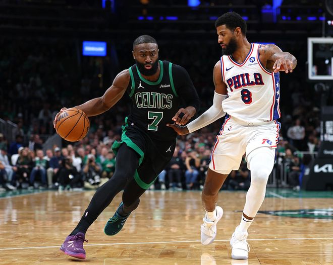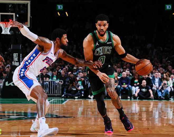 塔图姆半场14分8板4助2断,布朗11分3板2助,普里查德9分6助,武切维奇8分2助,克塔6分9板,76人方面恩比德15分2板5助,马克西13分4板,乔治8分3板3助2断,格兰姆斯6分1板。