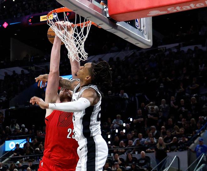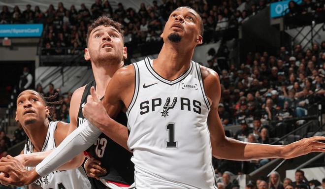 本场比赛,双方在首发阵容上面,马刺这边派出的是,文班亚马,瓦塞尔,卡斯尔,福克斯,尚帕尼,开拓者这边派出的是,阿夫迪亚,克林根,霍勒迪,亨德森和卡马拉。首节比赛开始,马刺率先拿到球权,瓦塞尔的急停中距离出手,打进本场比赛首个进球,阿夫迪亚面筐冲击篮下也为开拓者开张,文班亚马暴跳腾空,就是一个蓄力拽扣,尚帕尼追身三分球又一箭穿心,卡斯尔大步流星杀进内线也稳稳打进一球,马刺队先发制人,开局就取得了两位数的领先优势。阿夫迪亚电光上篮帮助开拓者及时止血,福克斯和尚帕尼手感火热,又连续飙进两个三分球。