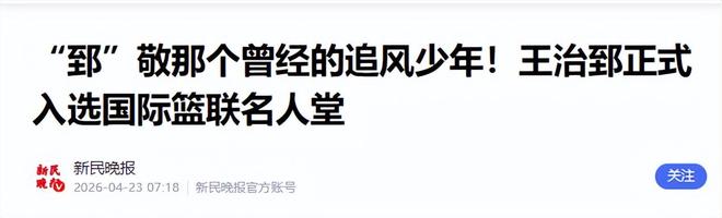 王治郅入选名人堂,是国际篮联对他个人成就的认可,更是对中国篮球的肯定。
