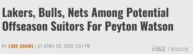北京时间4月30日,知名NBA记者杰克·费舍尔发布最新转会动向爆料,丹佛掘金阵中的年轻侧翼佩顿·沃特森,已成为今夏休赛期自由球员市场的焦点人物,洛杉矶湖人、芝加哥公牛、布鲁克林篮网三支具备薪资操作空间的球队,均被列为争抢这位受限自由球员的潜在热门下家。