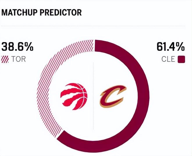 赛前,美媒ESPN对本场比赛进行了胜率预测,骑士队胜率升到61.4% ,猛龙胜率则仅有38.6% ,差距还挺大。