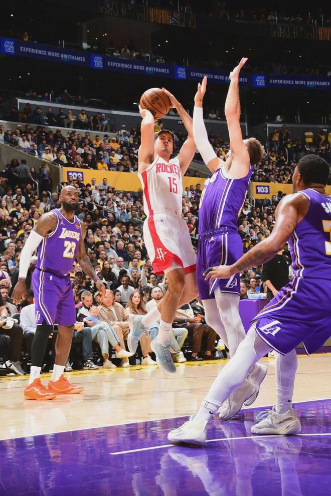 湖人防守犯错,在三分线外开始夹击申京,申京连送两记助攻队友扣篮。小贾外线飙进,火箭再次拉开。第三节火箭25-20净胜湖人5分,三节打完,火箭76-67领先湖人9分。斯玛特前三节出现5次失误,只送出1次助攻。