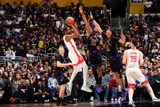 尽管火箭失去了范弗里特与亚当斯,杜兰特也因伤仅出战一场,但湖人毕竟没有东契奇,里夫斯也是刚伤愈复出。这支湖人的核心还是41岁的詹姆斯,可我们会见到马库斯-斯马特一次次地持球策动挡拆,卢克-肯纳德一次次地做出正确决策,八村垒一次次地完成错位单打。