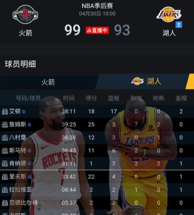 4月30日,坐拥主场之利且手握3-1领先优势的湖人,在斯台普斯中心迎来与火箭的西部首轮G5生死战。令人意外的是,球队最终以93-99惜败对手,被火箭连扳两城,系列赛悬念骤然升温,晋级形势由一片坦途转为胶着拉锯。