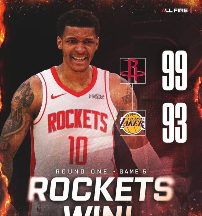虎扑体育 险胜湖人!火箭官方晒本场比赛的终场海报,大比分来到2-3