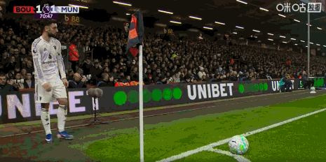 第31轮客战伯恩茅斯,B费点球破门,并且罚出角球制造乌龙。