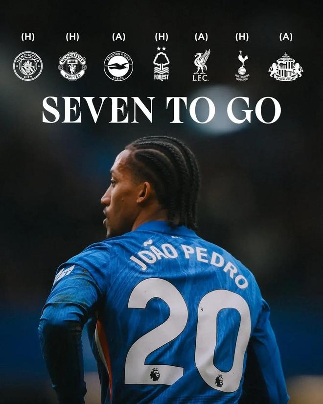 国际比赛日结束,英超将在本周重燃战火,其中欧战资格区的争夺似乎是最为激烈的。今日,切尔西在官方社媒发布了本赛季的剩余赛程,并配文:“还有七场重要的英超较量要踢”。