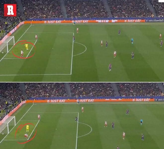 然而,主裁判伊斯特万·科瓦奇并未吹罚,VAR也未介入。这一决定立即引发了争议,许多人认为马竞逃过了一个点球判罚。