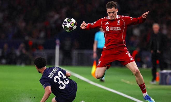 我看这场比赛最大的感觉就是,利物浦根本没怎么打出自己的节奏。前面10分钟还算正常,球员跑动也有,能看出来他们在防守上做了安排。但从第11分钟巴黎进球那一下开始,场面就直接变了。巴黎的传控不算花里胡哨,就是很稳,逼得你只能一直退。利物浦那边越踢越像在“撑时间”,不是说他们不会跑,而是球一到脚下就很难继续压上去。