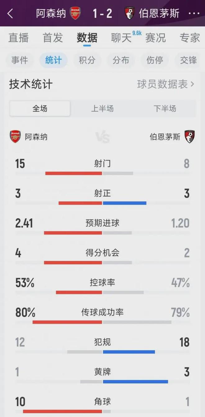 更让人心惊的是时间维度的对比:阿森纳近4场比赛输了3场,而整个赛季的前49场比赛一共才输了3场。英联杯决赛0-2负于曼城、足总杯1-2爆冷输给英冠南安普顿、如今英超主场1-2不敌伯恩茅斯——四线争冠的美梦,在短短不到一个月的时间里,已经碎得只剩渣滓。