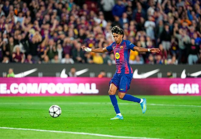 此役主场对阵西班牙人,上半场送出两次助攻的亚马尔在下半场打入一球。