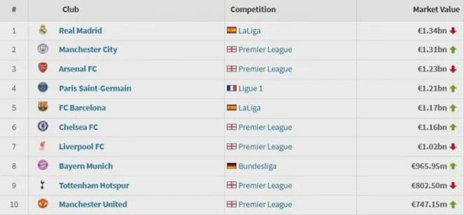 根据德转最新数据,热刺全队身价高达8.03亿欧元。这是什么概念?在全欧洲排名第9,力压曼联(7.47亿);在英超范围内高居第5,仅次于曼城、阿森纳、切尔西和利物浦。