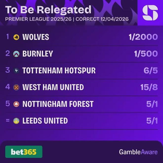 赛后,赔率机构已经将热刺的降级赔率开到了2.20,甚至低于西汉姆联。这不是看不起热刺,这是基于现实的冷酷计算。
