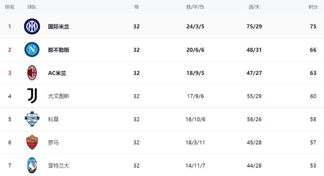 这场比赛真是太神奇了。国际米兰控球率只有40%,全场只有7次射门,却打进了4球,射门效率极高。科莫足足有24次射门,8次射正,只进了3球。国际米兰赢球之后,总积分达到75分,领先优势更大了,领先那不勒斯9分,甩开AC米兰12分,让冠军归属变得越来越没悬念。