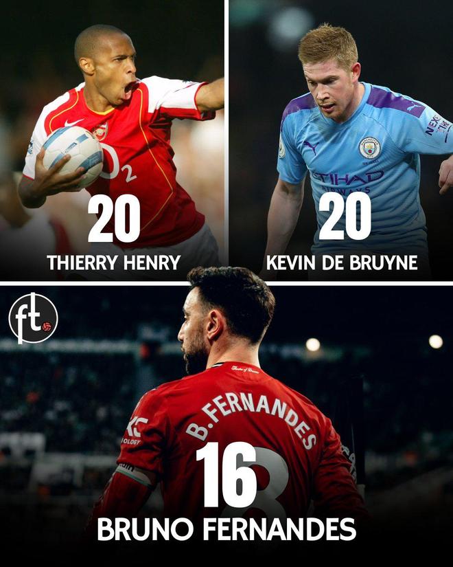 英超助攻榜的隐藏副本被B费刷出来了。16次助攻,距离亨利和德布劳内共同保持的20次单季纪录只差4个。问题是曼联只剩7场联赛,而B费过去8轮只送出1次助攻。