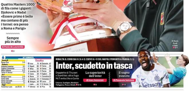 《米兰体育报》的标题写得直白:「国米,冠军在口袋里。」斯帕莱蒂赛后收到了阿涅利的祝贺,这种时候来自死敌高层的认可,比任何数据都说明问题。