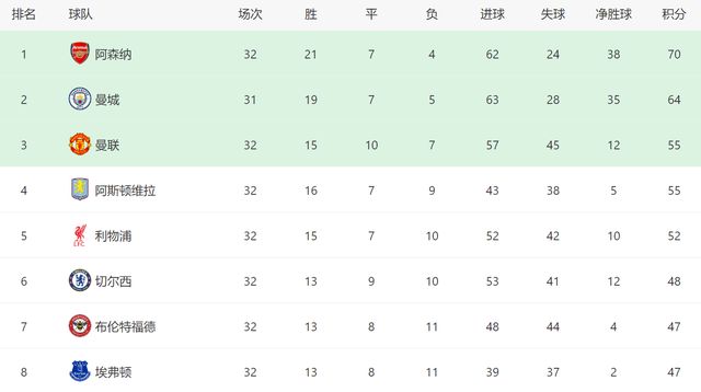 本场过后,曼联最近4轮英超,已经遭遇了2场败绩,期间他们仅仅击败过维拉,状态下滑非常明显。好在曼联尽管输球,但是他们依然排名第三,再加上切尔西本轮也输球,因此曼联依然领先对手7分,前五席位还算稳固。