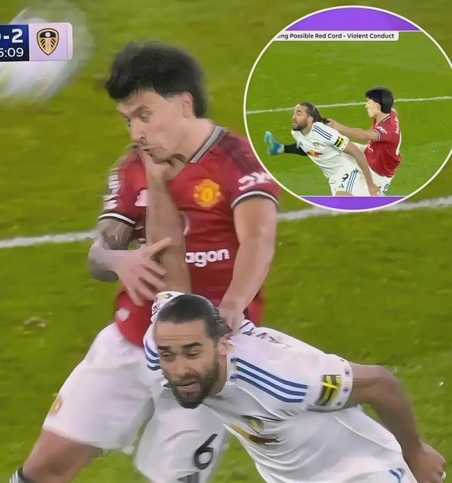 比赛第55分钟,利桑德罗中圈拉拽勒温头发,VAR介入后主裁直接出示红牌,这一判罚瞬间引爆舆论。回看细节,利桑德罗动作更接近拉拽衣物,且在察觉触及头发后即刻松手,反观利兹联首粒进球前,勒温对约罗的肘击动作清晰可见,裁判却视而不见,VAR选择性失明。