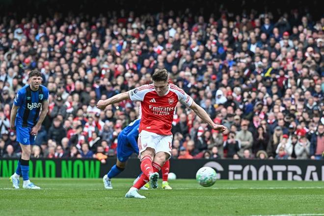 新华社照片,伦敦,2026年4月12日 4月11日,阿森纳队球员哲凯赖什点球破门。 当地时间4月11日,在2025-2026赛季英格兰足球超级联赛第32轮比赛中,阿森纳队主场1比2不敌伯恩茅斯队。 新华社发