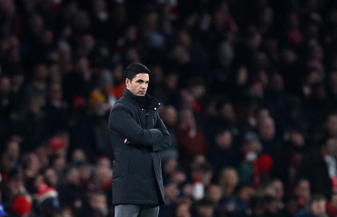 阿森纳队主教练阿尔特塔在场边观战。 新华社/法新