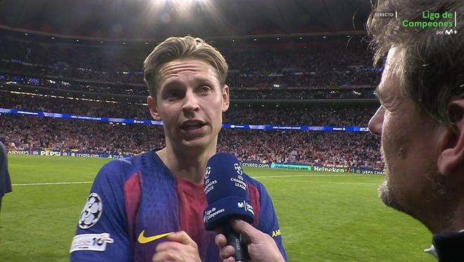 欧冠1/4决赛次回合,虽然巴萨在客场2-1击败马竞,以总比分2-3遗憾出局,中场大将德容赛后代表球队接受了Movistar+的采访。