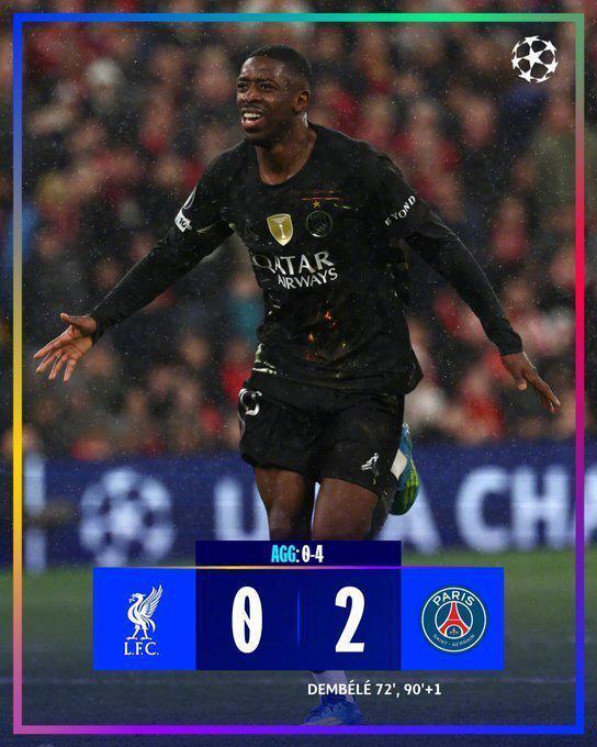 利物浦0-2(0-4)巴黎圣日耳曼
