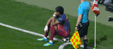 第26分钟,费尔明头球攻门后被踢到面部,接受队医治疗
