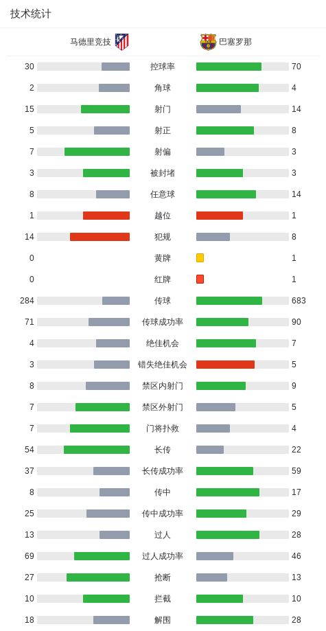 北京时间4月15日欧洲冠军联赛 1/4决赛次回合,马德里竞技对阵巴塞罗那。上半场,朗格莱失误,费兰直塞,亚马尔闪击得分。奥尔莫助攻,费兰劲射破门。随后,卢克曼打入稳定军心的一球。下半场,埃里克-加西亚作为最后一名防守球员对瑟洛特犯规,被主裁直红罚下。全场比赛结束,巴萨2-1客场击败马竞,但是总比分还是2-3不敌对手无缘欧冠4强。