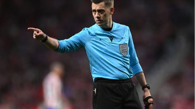 起初边裁举旗示意越位,但在VAR介入复核后,主裁推翻了这一决定。蒂尔潘被叫到场边监视器前,仔细回看这是否构成“明显的得分机会”,以及孔德是否有机会回防补位。