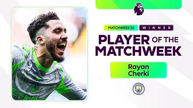 这是他首次获得英超单轮比赛最佳球员奖,这也是本赛季曼城球员第4次获得此项殊荣,此前哈兰德、多库和塞门约都曾获此殊荣。