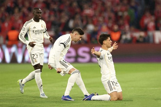 皇马因楚阿梅尼停赛、罗德里戈伤缺,排出442阵型,姆巴佩搭档维尼修斯锋线,中场贝林厄姆、居莱尔坐镇,首发身价高达8.55亿欧元。高身价对决,却以皇马崩盘、拜仁绝杀收尾。