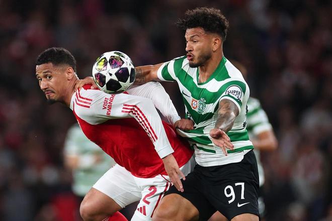 第43分钟,葡萄牙体育队发动进攻,皮球传到禁区后点,卡塔莫不停球直接推射,皮球击中立柱,阿森纳逃过一劫。
