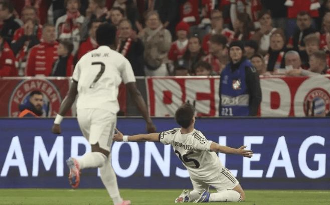 但下半场风云突变。皇马体能断崖,防守漏洞百出。第86分钟,卡马文加两黄变一红被罚下,十人应战。89分钟,布拉欣·迪亚斯轰出世界波绝杀?不,那是拜仁的进球!补时第94分钟,奥利塞锁定胜局,6-4!安联沸腾,伯纳乌沉默。