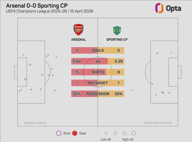Opta统计,本场比赛阿森纳的预期进球只有0.64,葡萄牙体育则只有0.29,两支球队的预期进球数之和创造了本赛季欧冠单场比赛最低纪录。