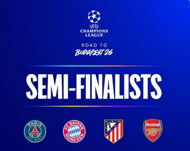 拜仁近4次欧冠交手均零封巴黎,但去年世俱杯巴黎曾2-0取胜。马竞时隔9年重返欧冠四强,阿森纳则是连续第二年进入半决赛。