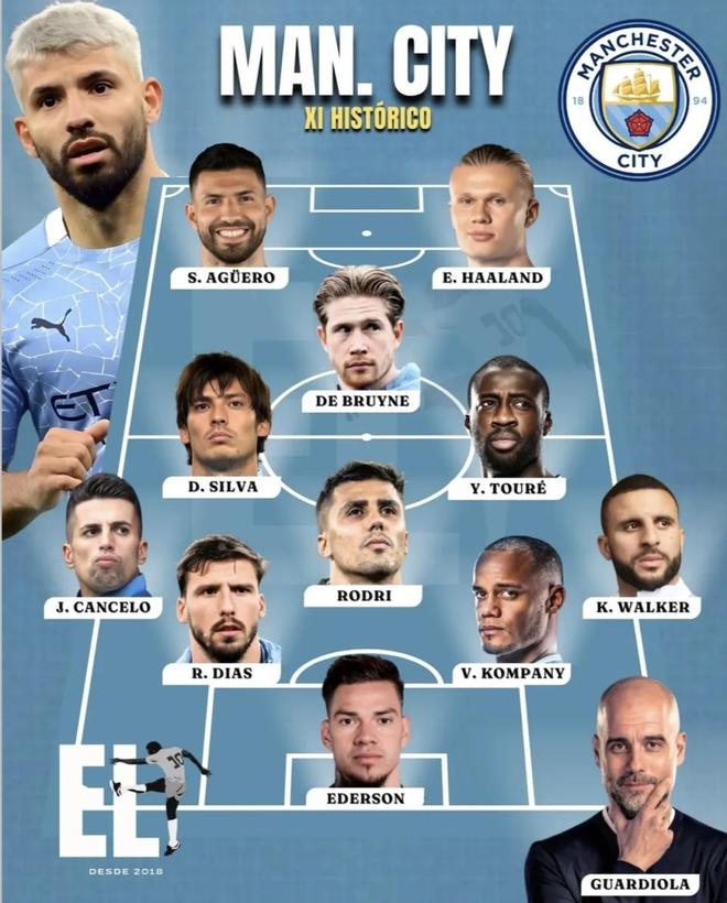 不过这套阵容最值得聊的,不是谁不够大牌,而是这十一个人拼在一起到底顺不顺。阿圭罗和哈兰德都是曼城历史上最顶级的终结者,但两人的特点都更适合在禁区内完成终结,而不是频繁回撤去串联进攻。
